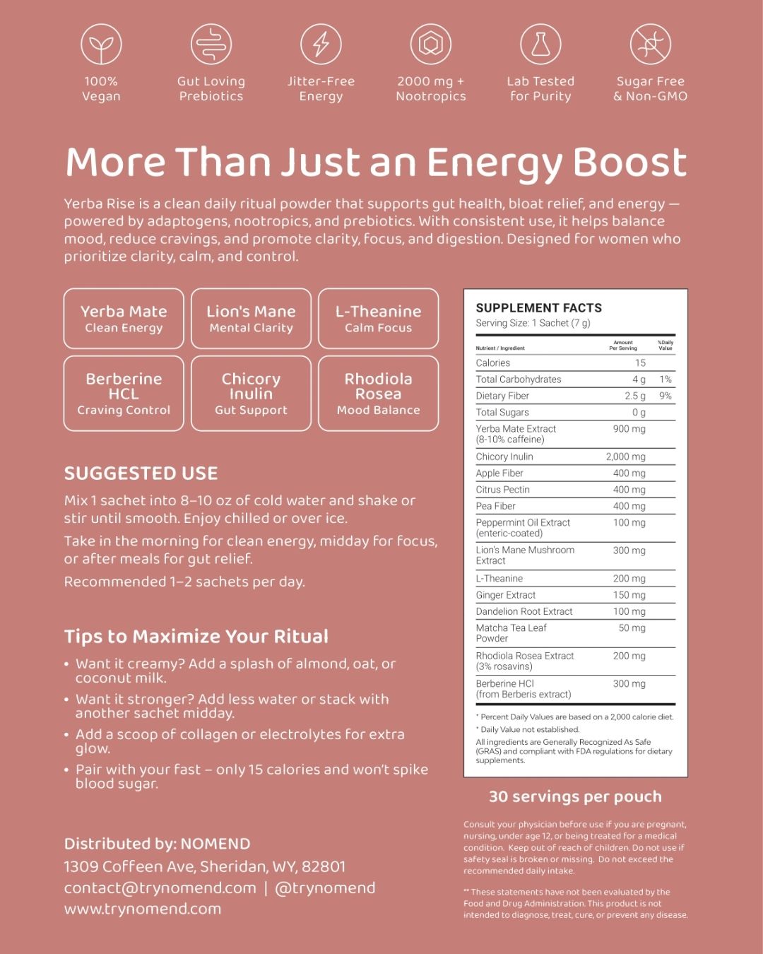 Yerba Rise is made with 100% natural, plant-based ingredients sourced under clean label standards.